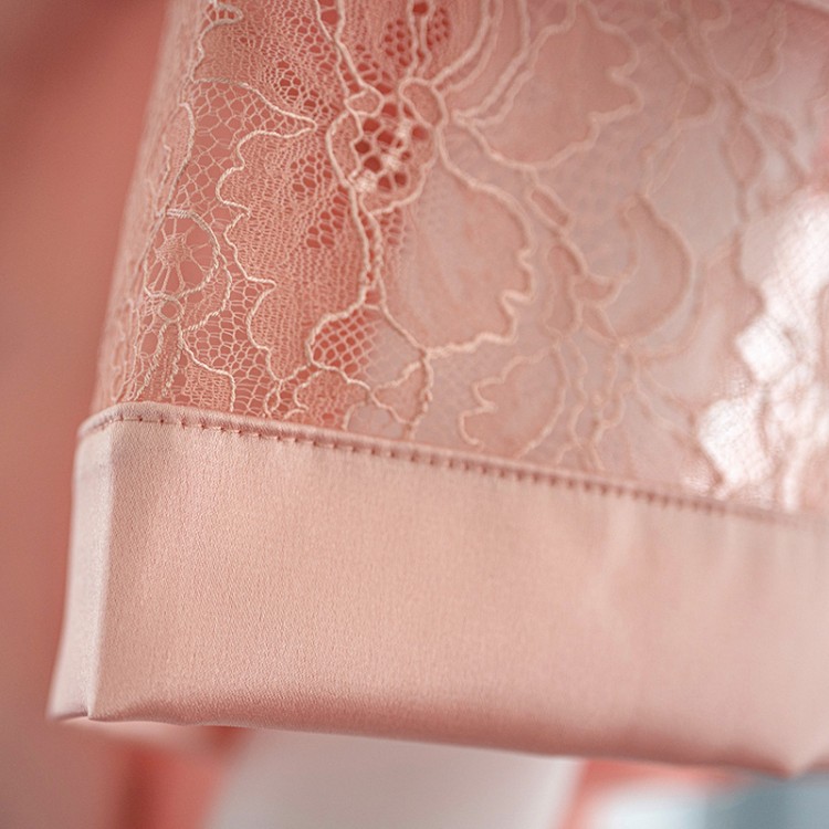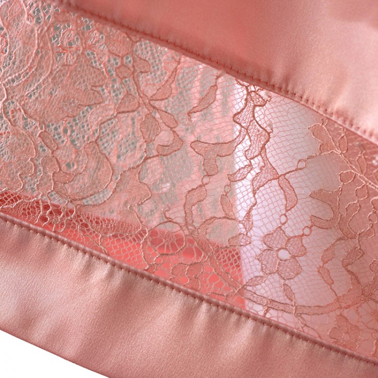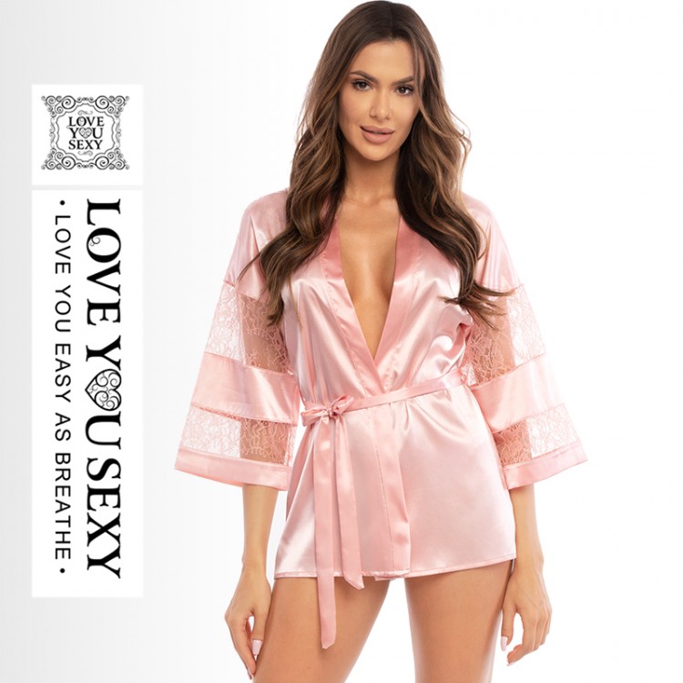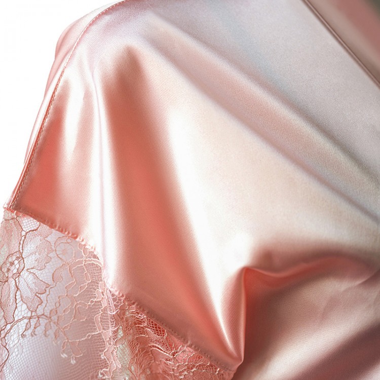 Seriously sexy style: Satin chemise with mesh bra cups with flowers lace under the cups, matching with mesh robe with satin ribbon edge. A transparent mesh over the breasts for a gorgeous looking, as you can see the looming sexy is coming out.